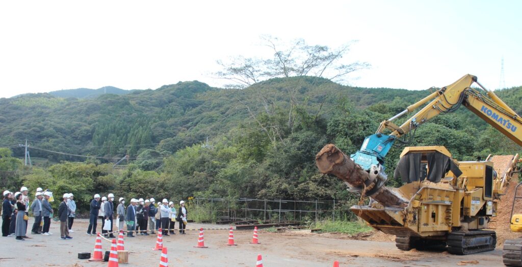 大きな丸太も一瞬でチップに変わっていく迫力ある様子に、皆さんも大変興味を持っておられました。